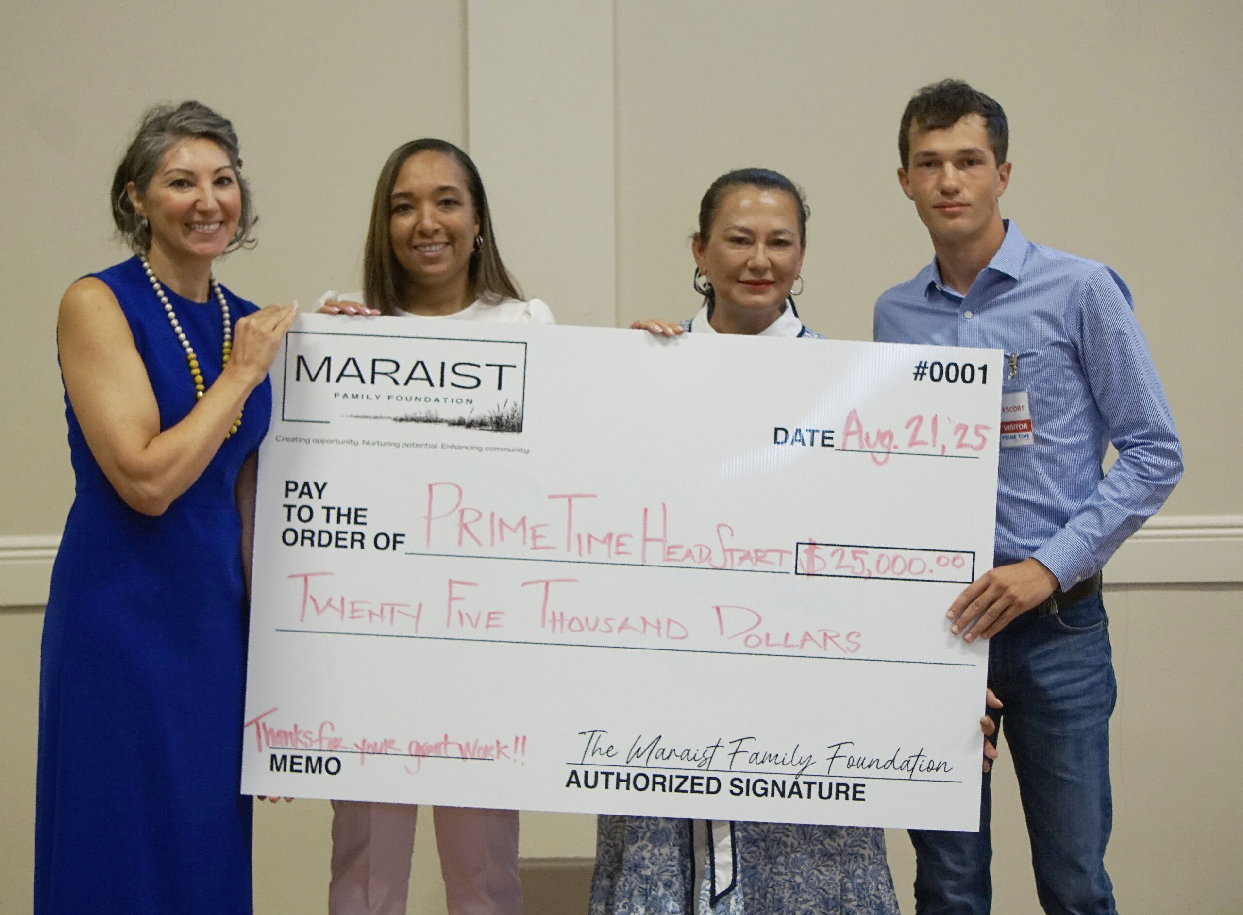 Like all things Prime Time, our Head Start and Early Head Start centers are family-focused, with programs designed to engage parents and guardians as partners to ensure that students build basic skills, develop a love of literacy, and hone critical-thinking abilities that will set the foundation for kindergarten readiness and lifelong learning. This generous donation will support three Prime Time Preschool Reading family literacy programs and monthly Family Engagement Network Meetings during the 2025-26 school year.